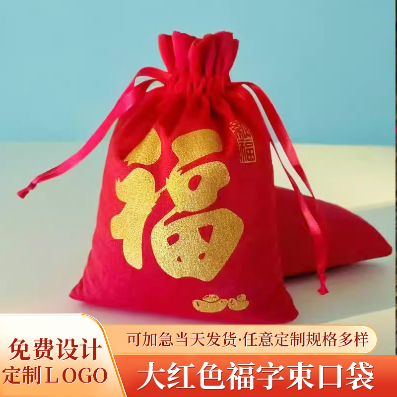 大きな赤い福の字の袋の春節の新年の贈り物のジュエリーのフランネルの布のポケットの小さい福の字の硬貨の袋の財布