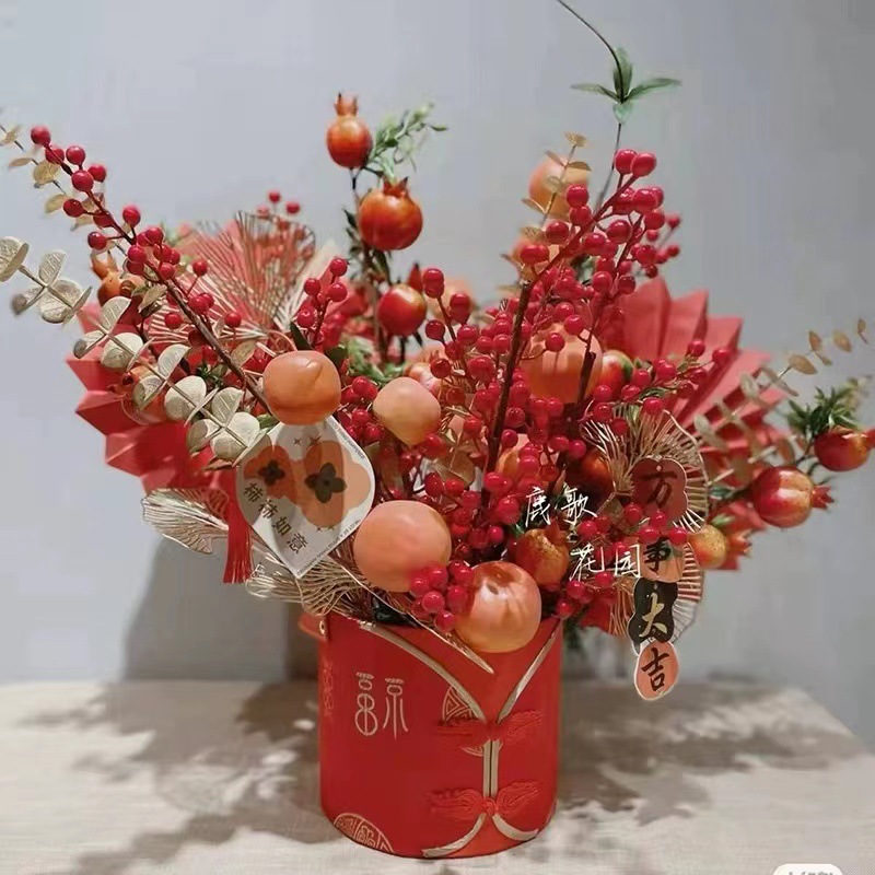2022中国風新春家庭装飾客間装飾装飾品雰囲気装飾品シルク二福桶セット