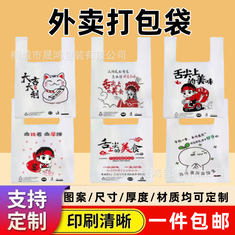 使い捨ての出前包装袋ビニール袋卸売り馬甲袋業務手提げ袋飲食軽食はレジ袋を送る