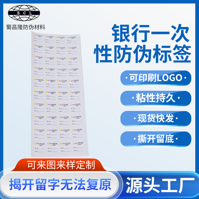 银行一次性防伪标签纸批发防拆防撕防伪材料印刷加工防伪不干胶