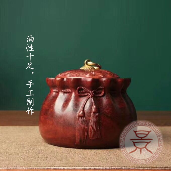 血檀紫檀銭袋福袋茶葉缶赤木家庭用レトロ家庭用置物木製密封茶葉缶蓋付き