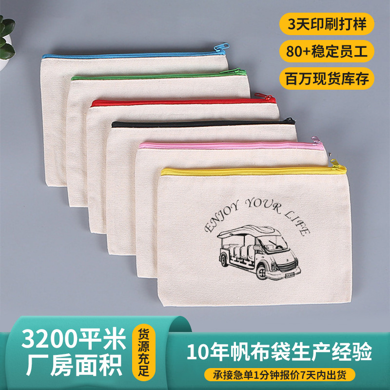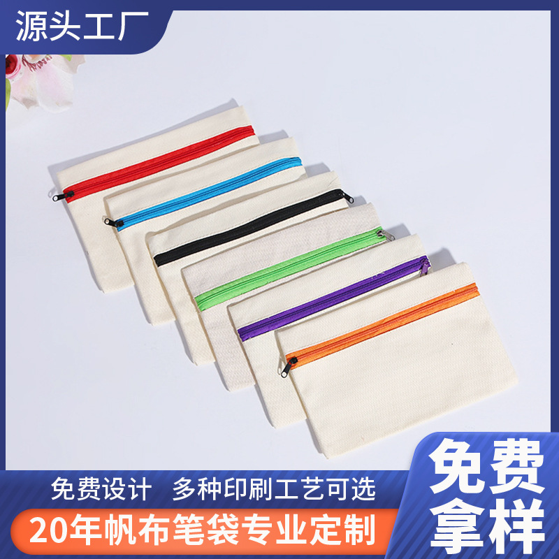 クロスボーダー直供帆布筆袋カスタム学生文房具ジッパーバッグ化粧収納バッグ綿袋現物