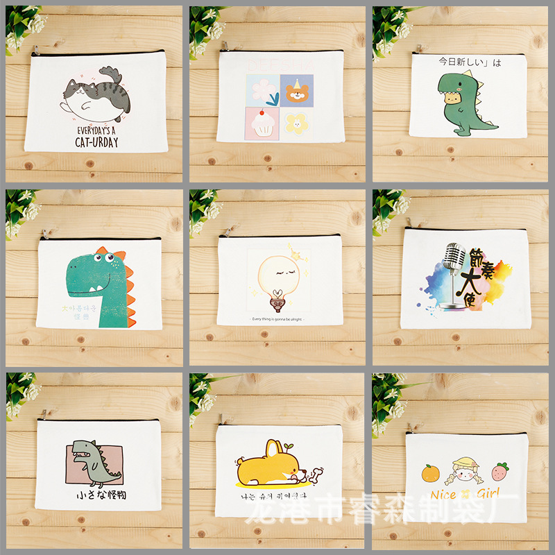 アマゾンクロスボーダー卸売り創意現物空白ファスナーキャンバス筆袋オーダーメイドポーチ収納クラッチバッグ
