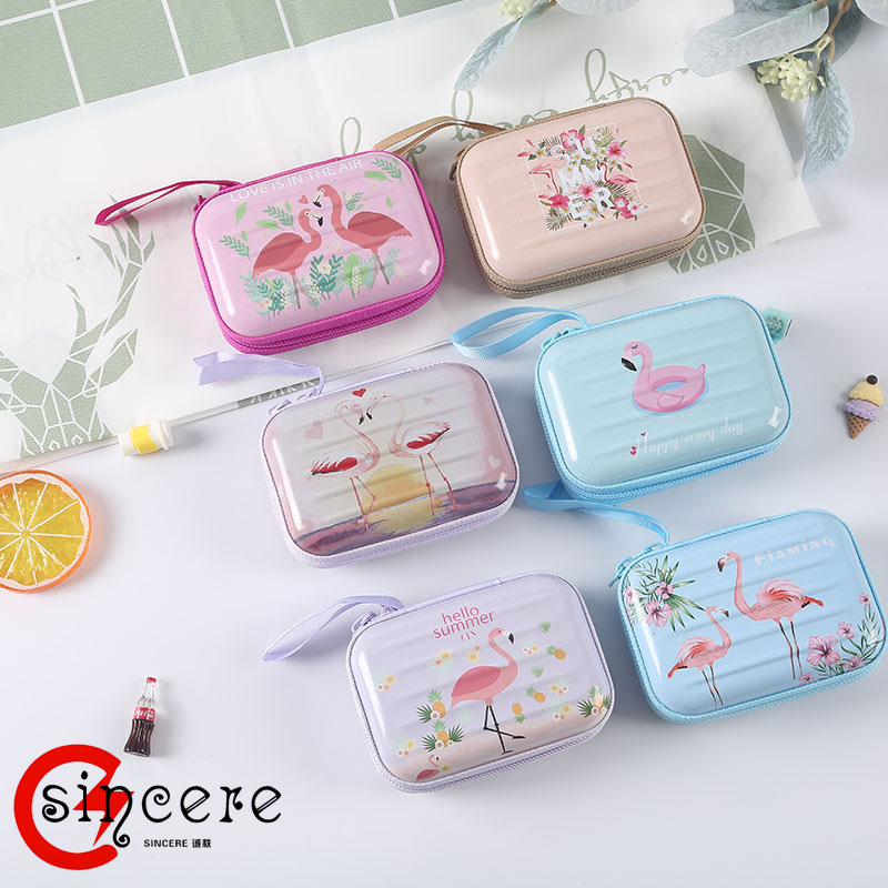 漫画の財布かわいいフラミンゴブリキジッパー収納ボックスイヤホンバッグ長方形ボックス