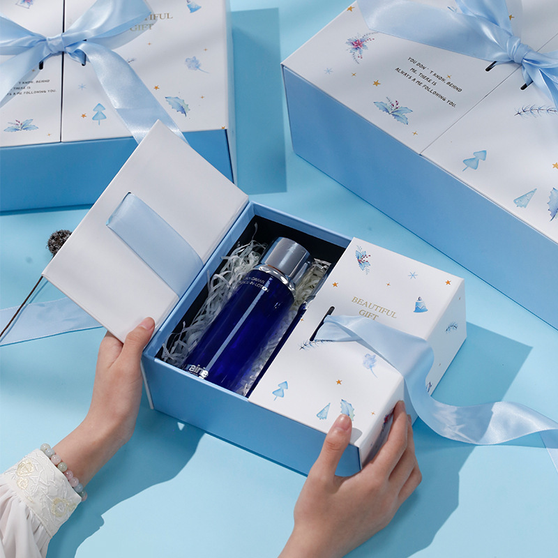 生日礼物盒浅蓝色蝴蝶结伴手礼盒皮带钱包护肤品定制双开包装盒
