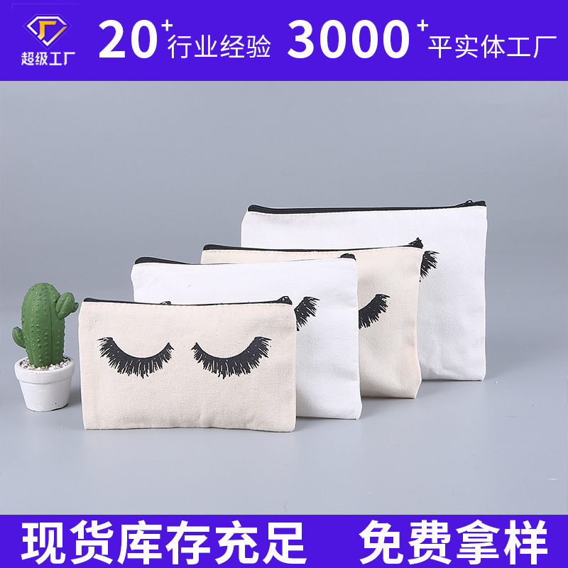 現物卸売りクロスボーダーまつげ付文房具筆袋キャンバス袋学生女性ファスナーはキャンバスの筆袋を持っています。