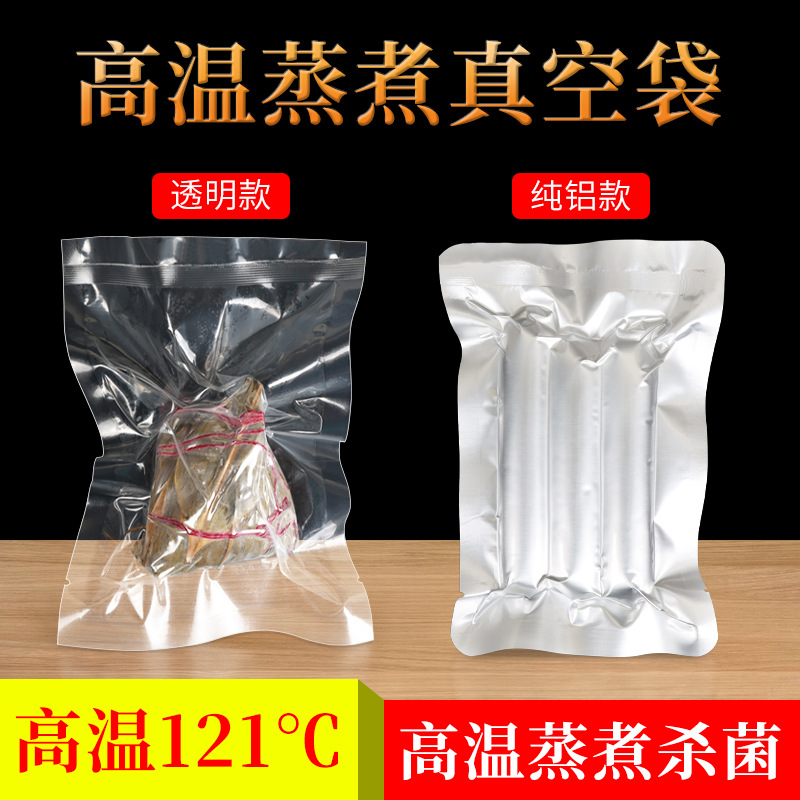 カスタマイズ可能な耐蒸煮真空食品包装透明純アルミニウム高温真空袋調理済み食品保存用プラスチックシール袋印刷可能