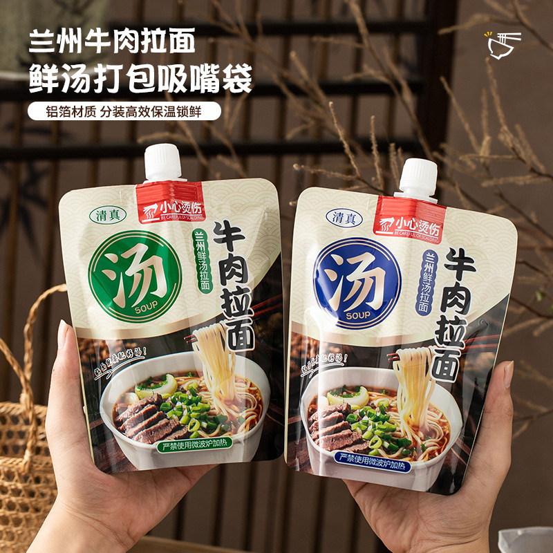 使い捨てテイクアウトパッケージ、スープ、牛肉ラーメン、カタツムリパウダー、漏れ防止アルミホイル大口径ノズルバッグ卸売