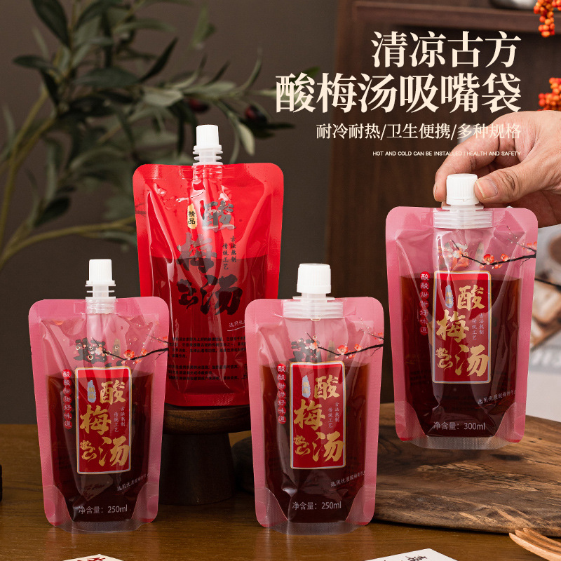 大口径吸口袋500ミリリットル梅スープ分注袋使い捨て液体包装豆乳透明吸口袋