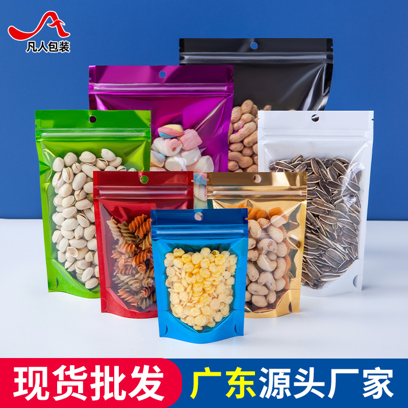 カラー陰陽自立自封ポケット半透明雑穀スナック品包装トランペットアルミ箔密封袋に穴がついている