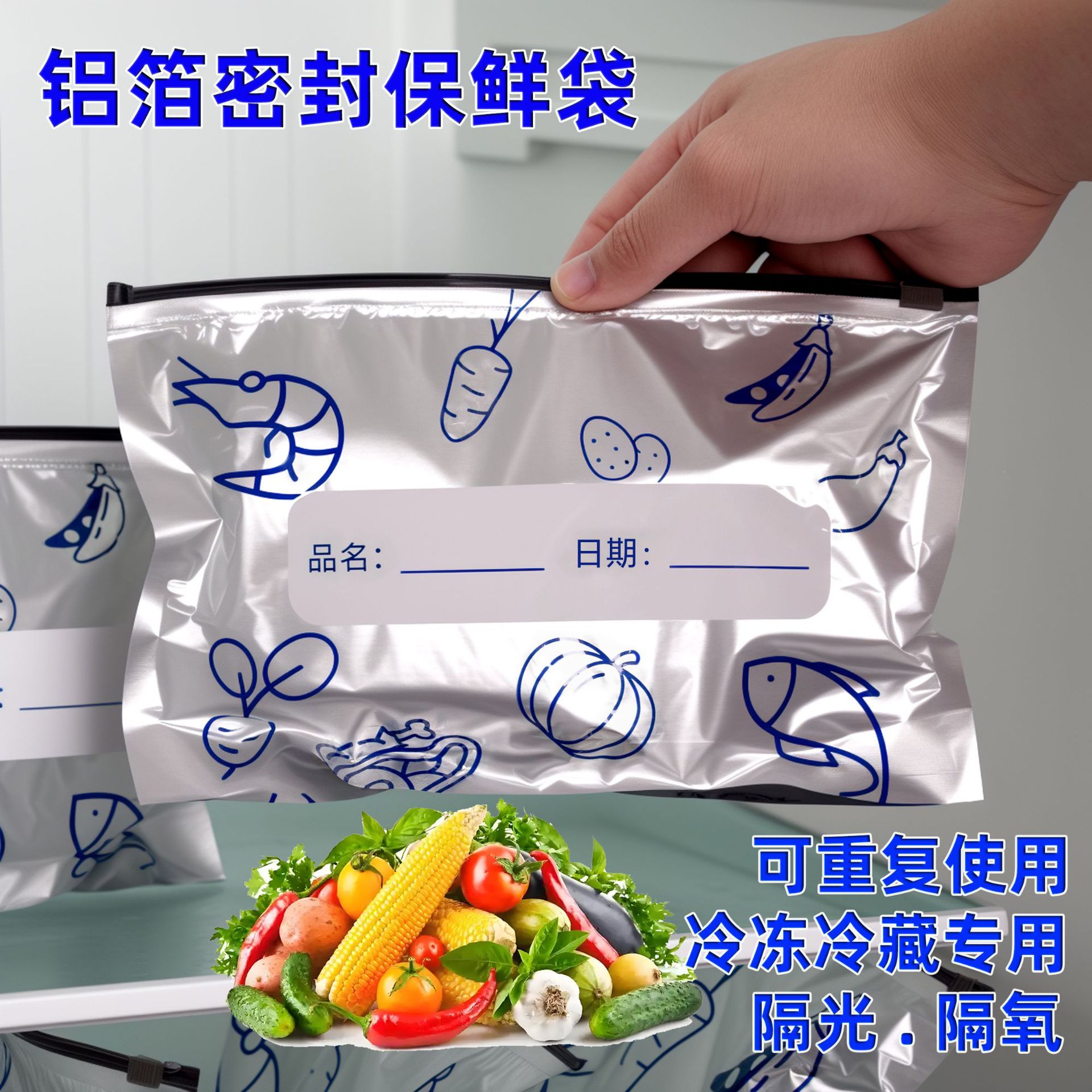 現物アルミ箔新鮮保持密封袋家庭用冷蔵庫食品肉類野菜冷凍収納袋自立式包装袋