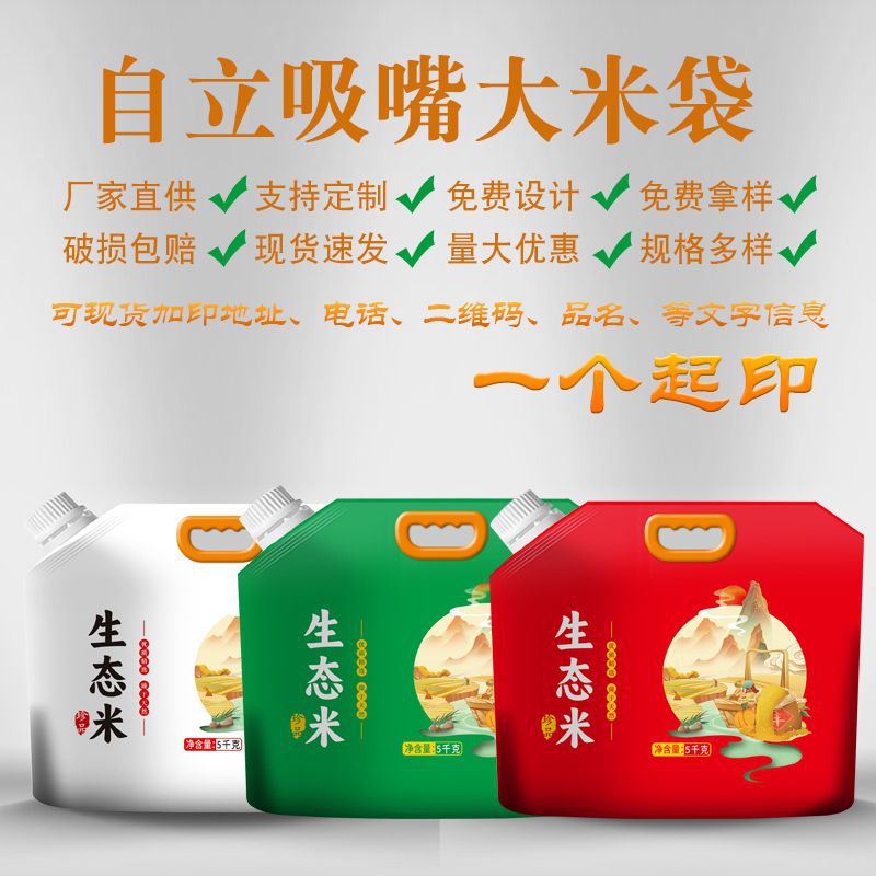 米包装袋はプラスチックのノズルを厚くして自立して食品包装を密封します。