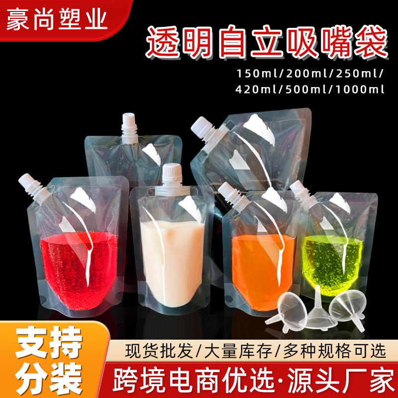 透明吸口袋使い捨て漢方薬五穀雑穀豆乳ビール自立液体袋吸口包装袋卸売り