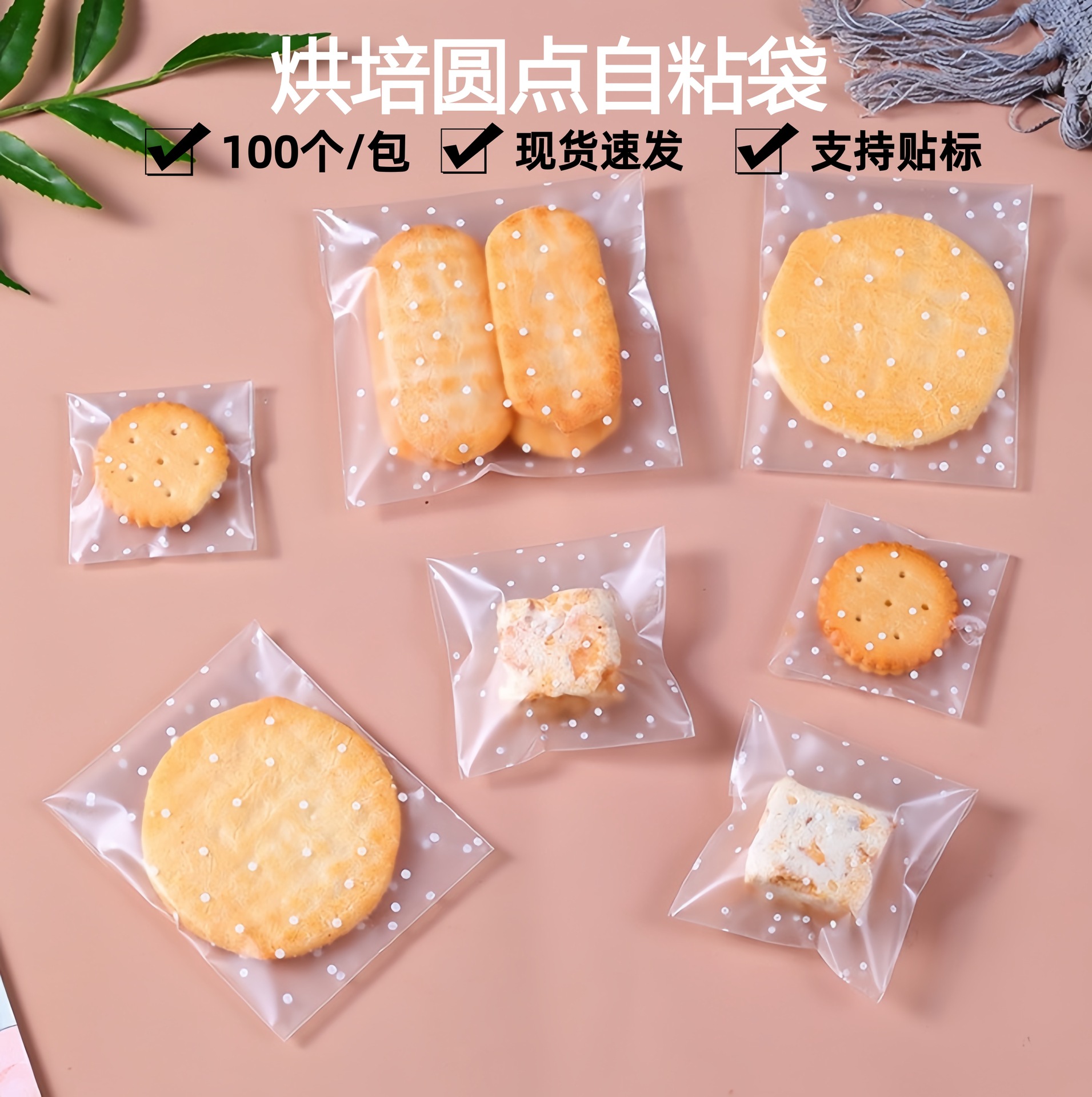白いドット模様のつや消し粘着ジップロック袋、半透明のスノーフレークペストリー包装袋、キャンディークッキー焼き菓子包装袋