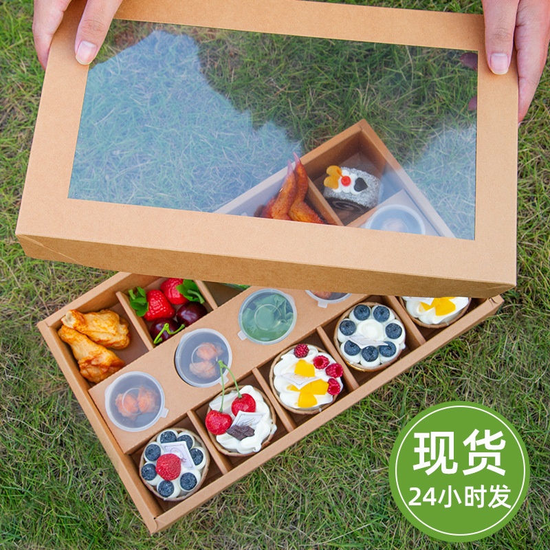国境を越えて一度に窓を開けるクラフト紙の野食箱ケーキはデザート箱を梱包します。