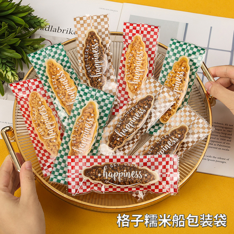 新しいキャラメルアーモンドクリスプ船型菓子包装、使い捨てもち米船型包装袋、ロリポップ小葉菓子透明袋