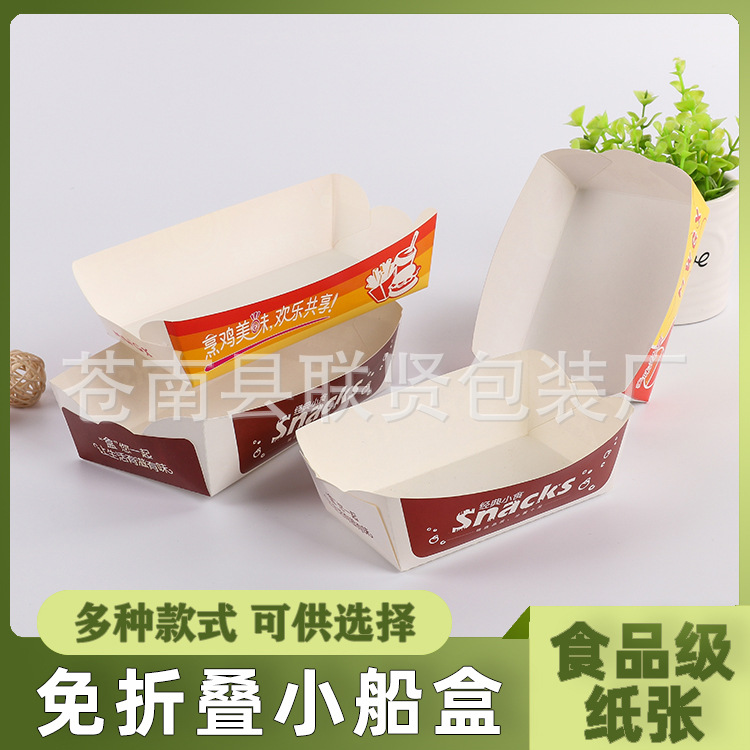 ボートの箱のファーストフードのテイクアウトの使い捨ての食品の包装の紙の箱のポテトチップスの鶏の足の鶏の羽の鶏の塊のオープンボックスの卸売り