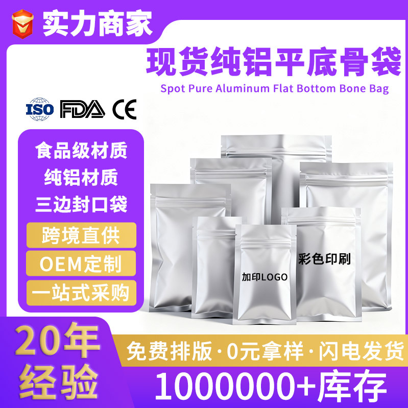 純アルミ自封袋食品平底拉骨袋不透明アルミ箔密封茶葉サンプル封袋印刷ロゴ