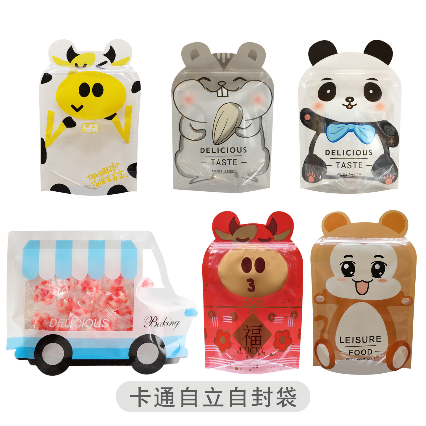 漫画自封自立袋パンダハムスター猿招財猫食糧リス乳牛圧延砂糖パン袋