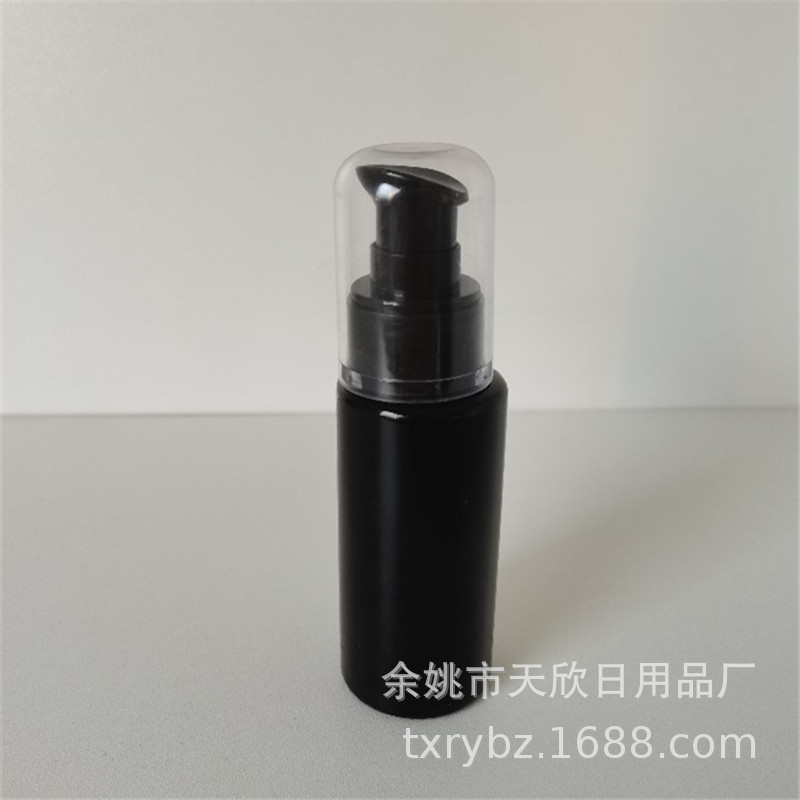 60mlブラックフラットショルダー24口径プラスチックpetボトルフルカバーASラウンドカバーパウダーポンプパウダーポンプ希釈ローションボトル光よけ