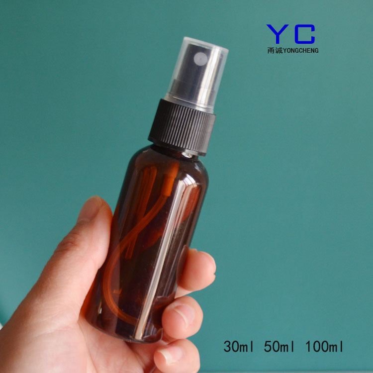 30ml 50ml 100mlラウンド肩ブラウンスプレーボトル香水スプレーボトル分注消毒水ボトルプラスチック小さなスプレーポット