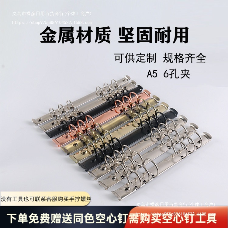 ノートブックバインダー 6穴 8inch ユニバーサル A5 紙インナーバインディング収納クリップ金属鉄リング工場直販鉄クリップ