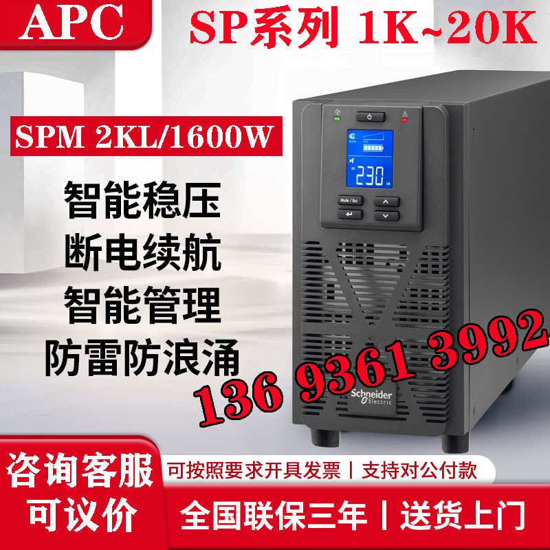 蘭州シュナイダーups電源spm3kva/2400w内蔵バッテリー高周波機単入単出