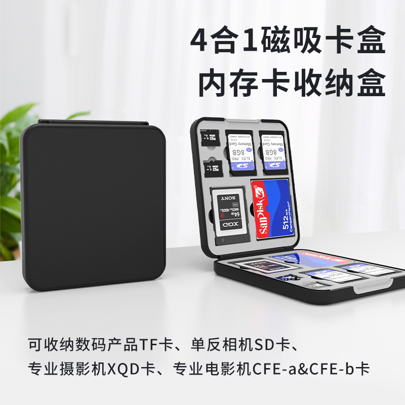 四合一磁気カードボックスのカメラメモリカードの収納部品はtf sd xqf cfeメモリカードに対応しています。