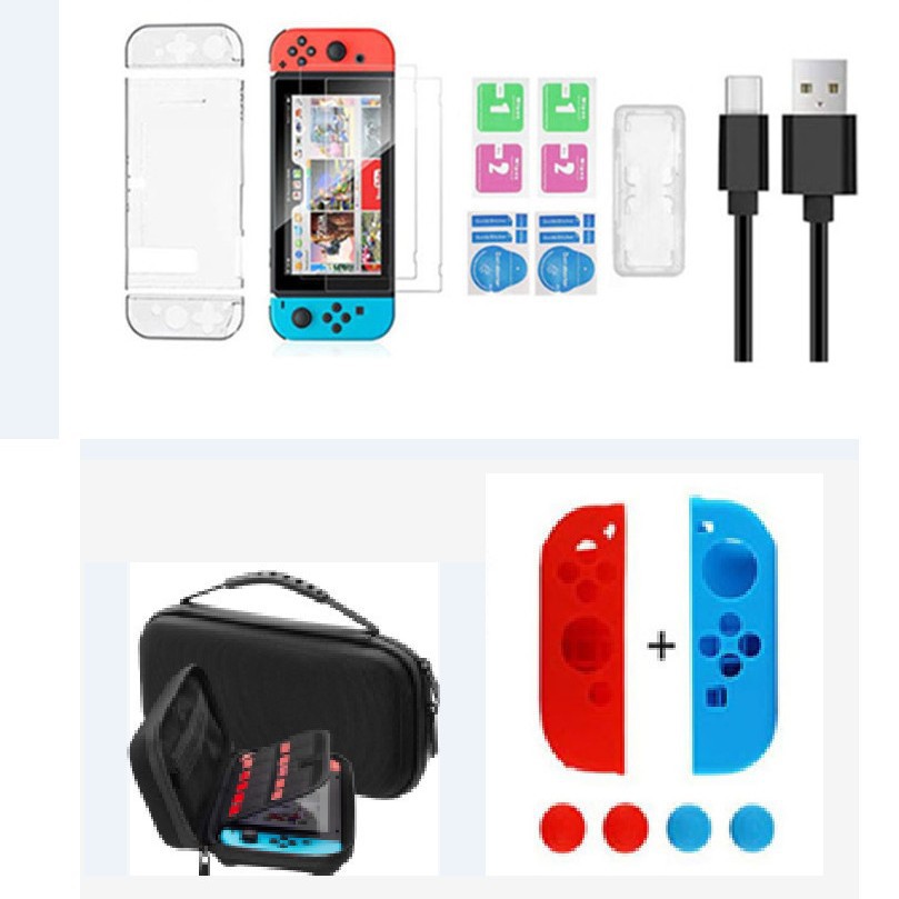 セットns水晶ケース充電線強化膜保護ケース部品収納バッグは任天堂switchに適している