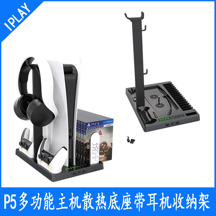 Ps5本体泛用多机能放热ベース収纳ラックp5ハンドル付きダブルシート充电ヘッドフォン付き収纳ラック