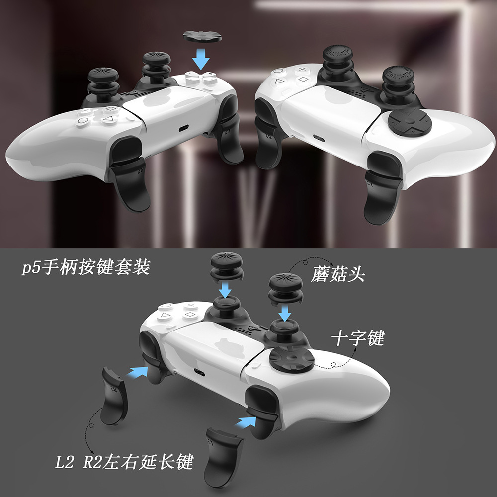 Ps 5ゲームハンドル引き金延長部品十字キーps 5 l 2r 2ボタン + ロッキングキャップ8セット