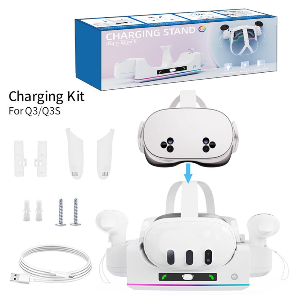 メタクエスト3S VRメガネハンドル充電ベースクエスト3汎用壁掛け式シートRGBライト付き