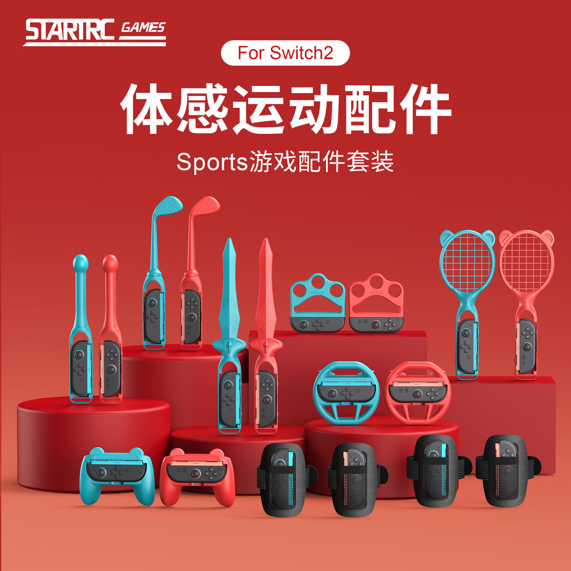 Switch2 フィットネス スポーツ セット 18-in-1 体性感覚ゲーム コントローラー ライトセーバー テニス ラケット レーシング ステアリング ホイール アクセサリー