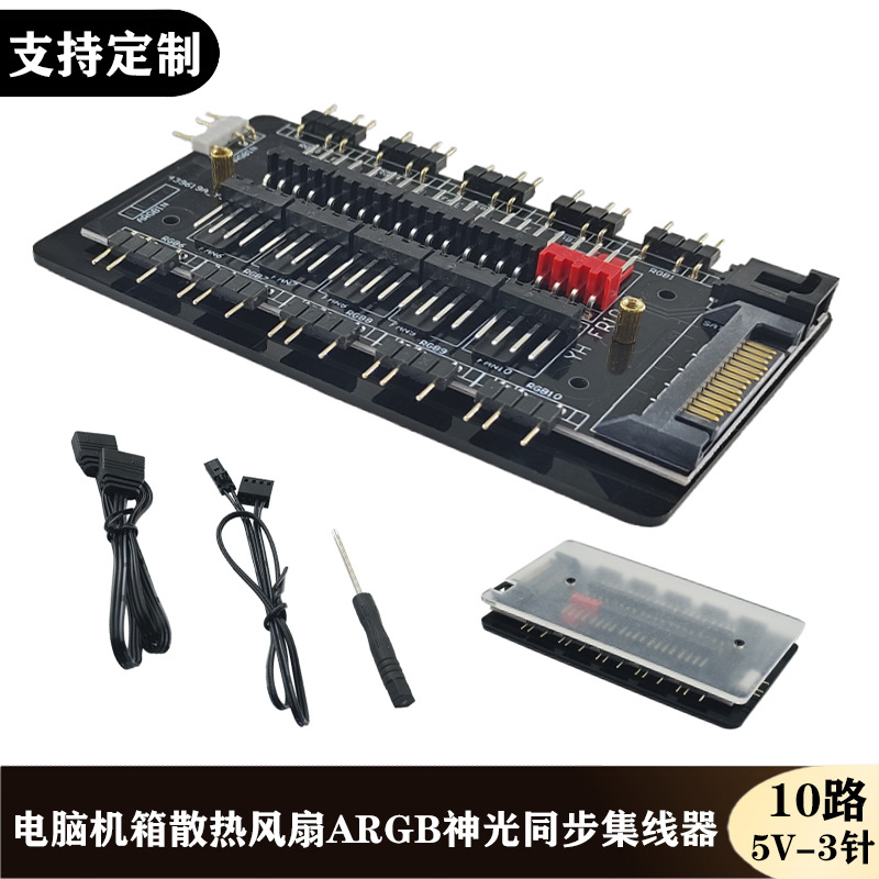 コンピュータシャーシのファン5v 3ピンARGB神光同期コントローラ10路4pin PWM温度制御HUBハブ