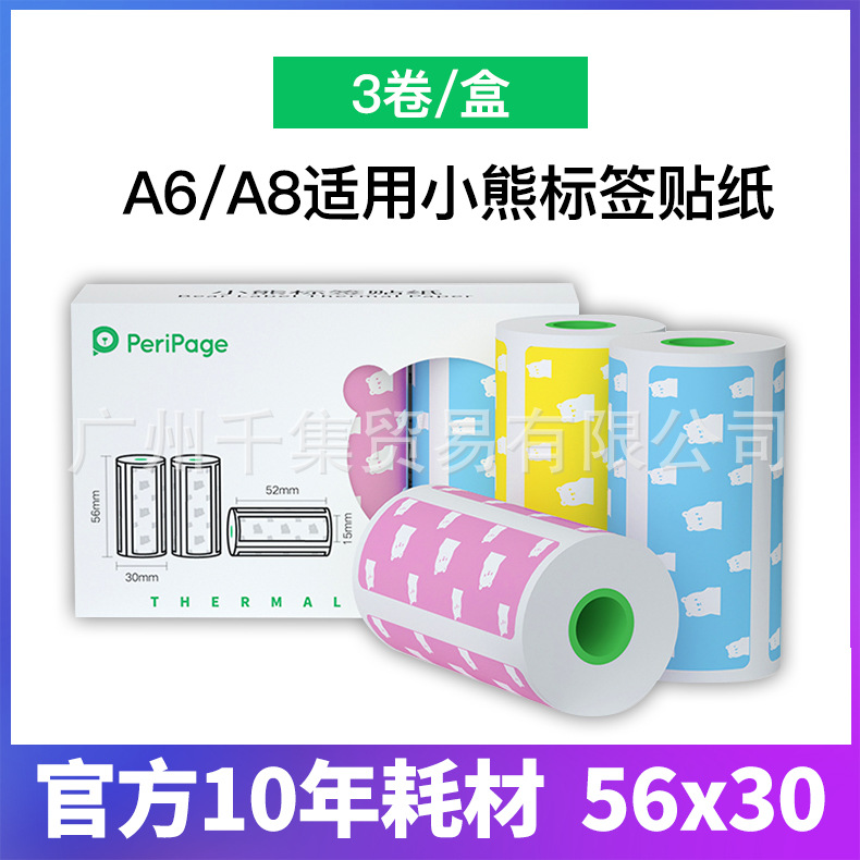 Peripage愛立熊10年公式印刷紙カラー熊ラベルシールステッカー感熱紙
