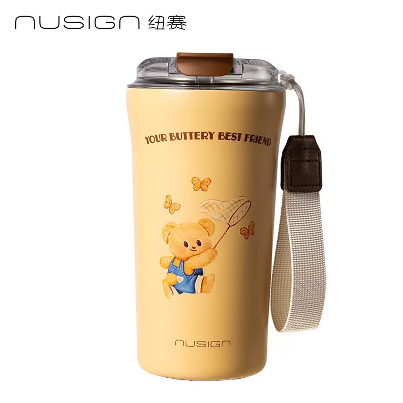 有力NS855-Bバター熊連名コーヒーカップ保温カップ大容量子供携帯ステンレスカップ