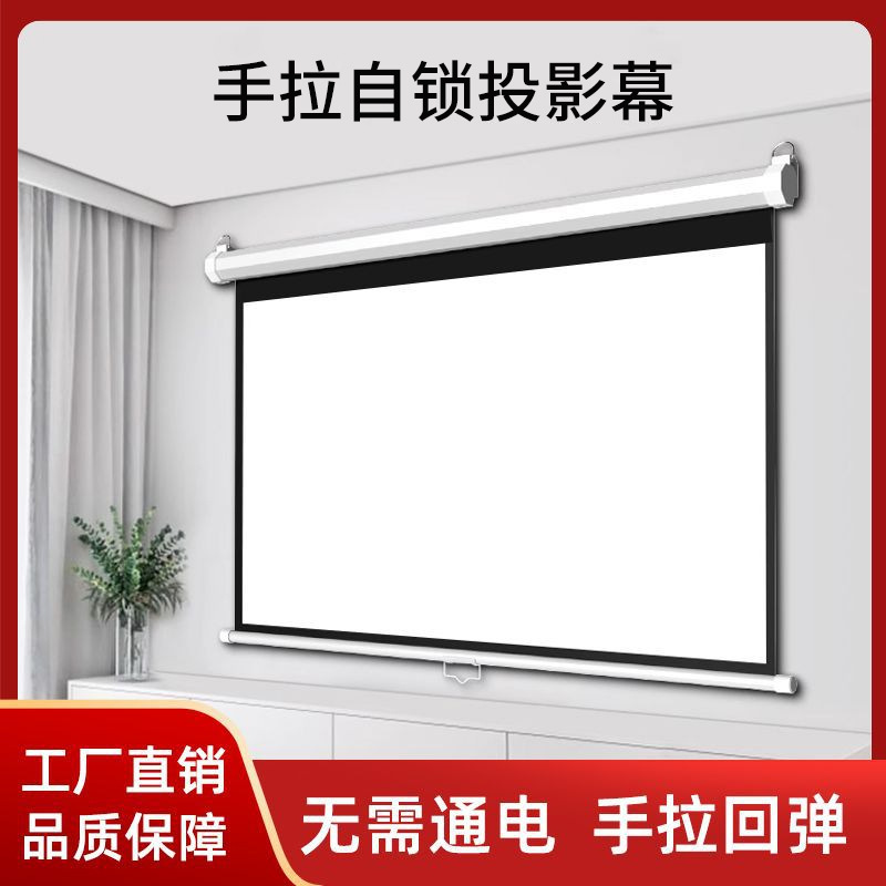 セルフロック投影幕布ハンドスプリングバック100インチハイビジョン壁掛け投影家庭用昇降オフィスプロジェクター幕