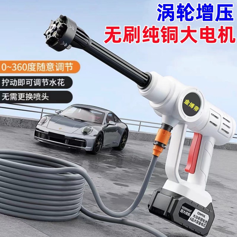 家庭用高圧洗车水ガンワイヤレスポータブル电気洗车机ポータブル充电式ハイパワーウォーターポンプブラシ