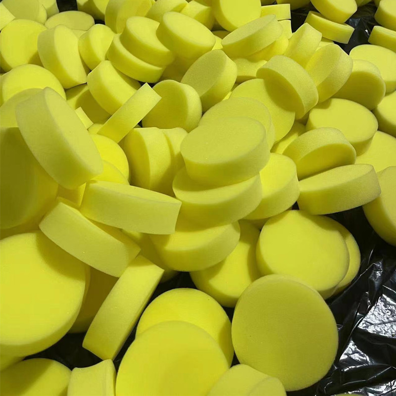 高密度黄色の清潔なスポンジの皮の看護の自動車の清潔な美容はワックスの円形のスポンジを研磨して現物を拭きます。