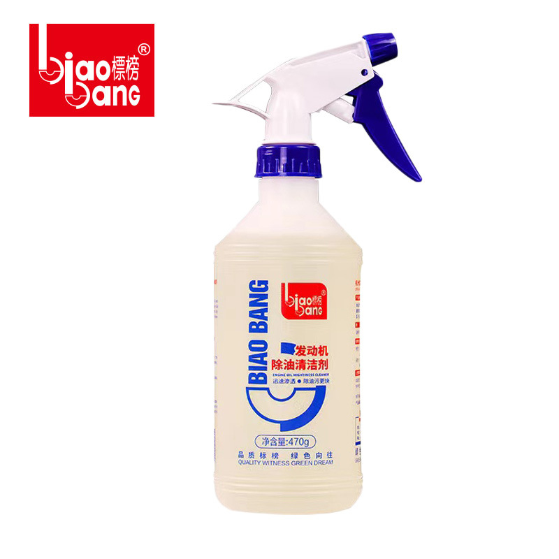 エンジンの強力な油除去洗浄剤を標榜して、車のエンジンヘッドの水を手で噴射して油汚れ洗浄剤を除去します。