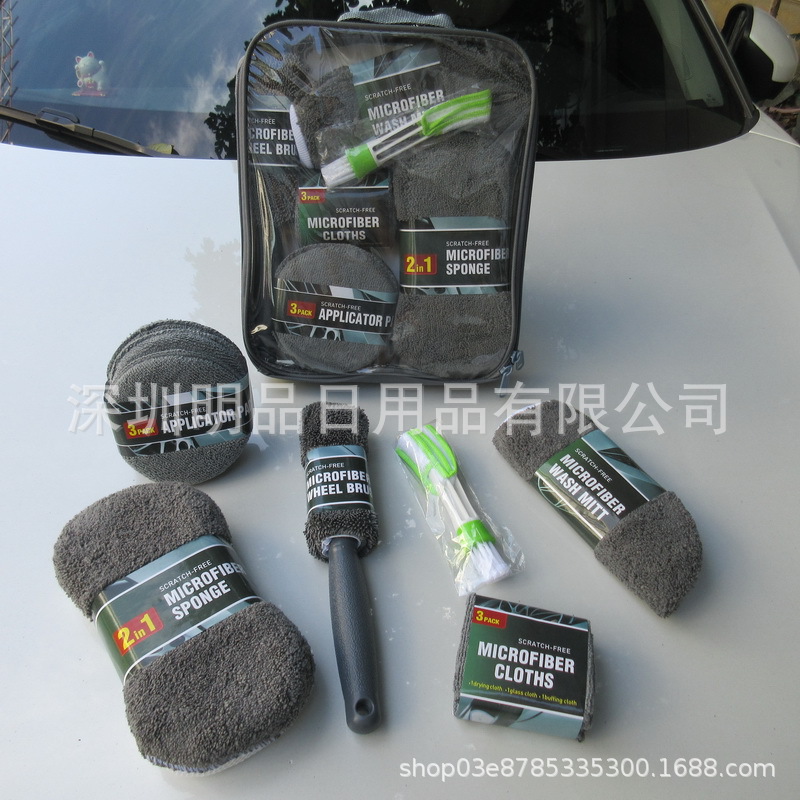9点セット 洗車 車美容 クリーニング 車拭きタオル 家庭用手袋 タオル 雑巾 ワックススポンジ ホイールブラシ