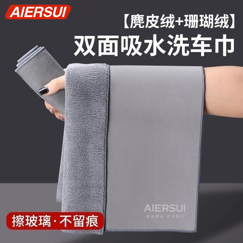 スエード洗車タオル、両面コーラルベルベット車拭きタオル、ガラス拭き、跡の残らないスエード吸水性車用クリーニングタオル
