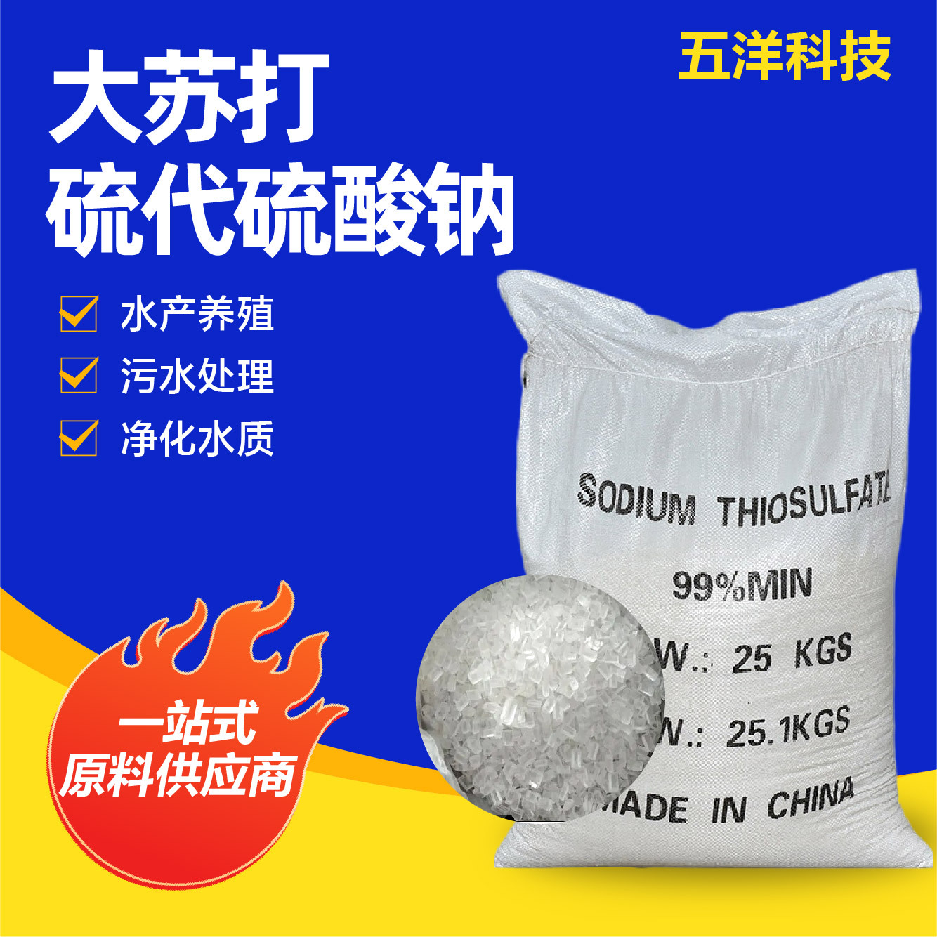 水質浄化用養殖・下水処理用大ソーダ脱フッ剤 工業用グレードの大ソーダ硫代硫酸ナトリウム