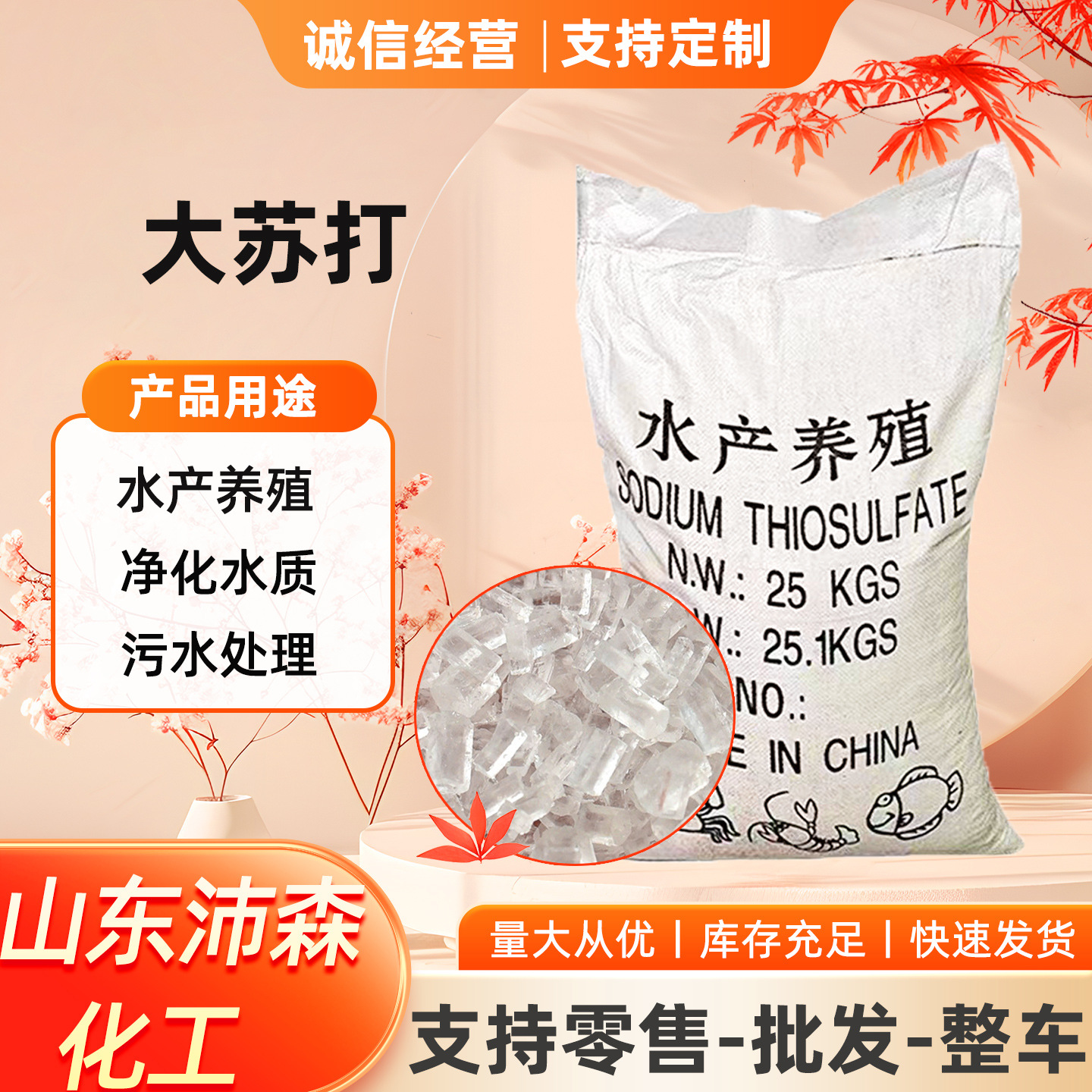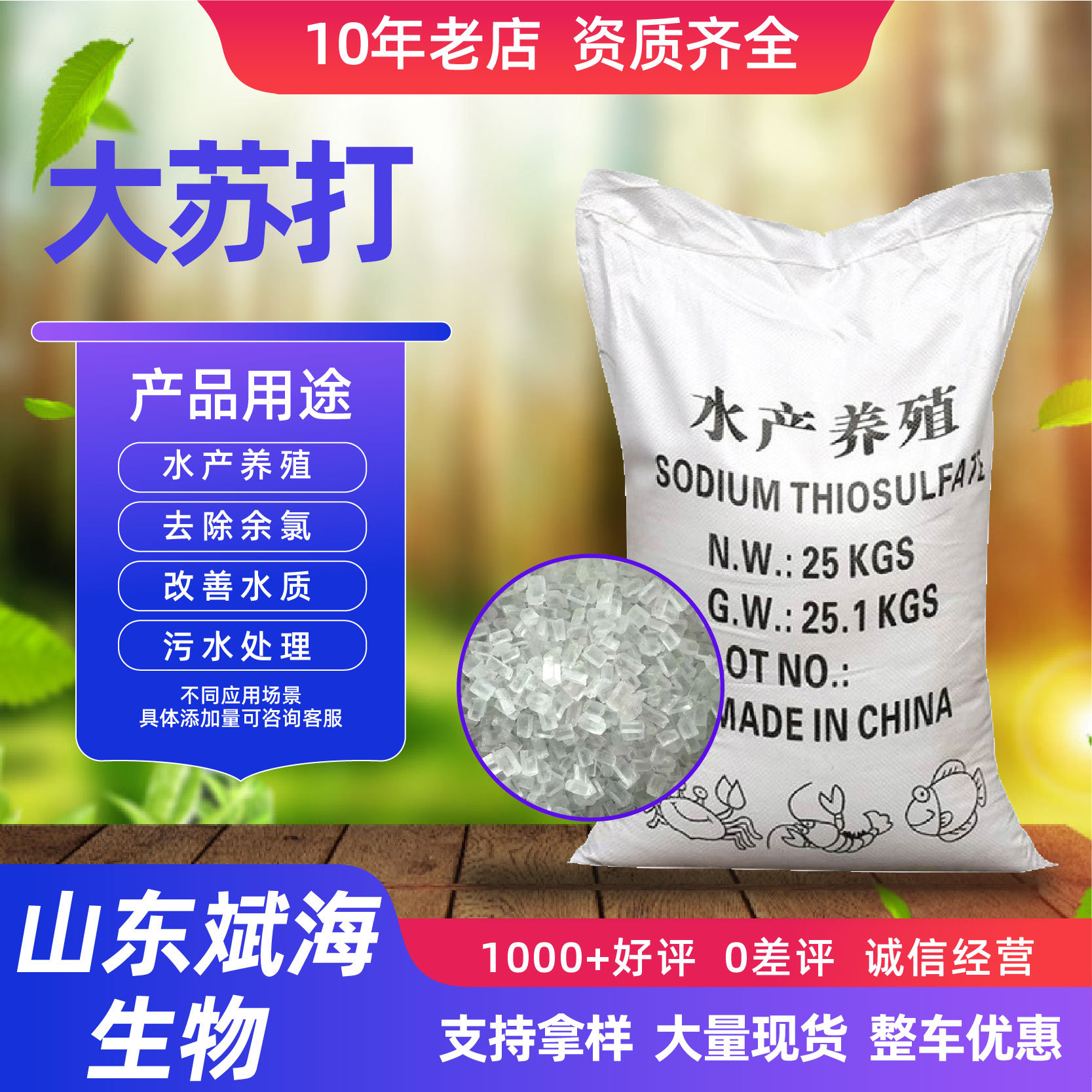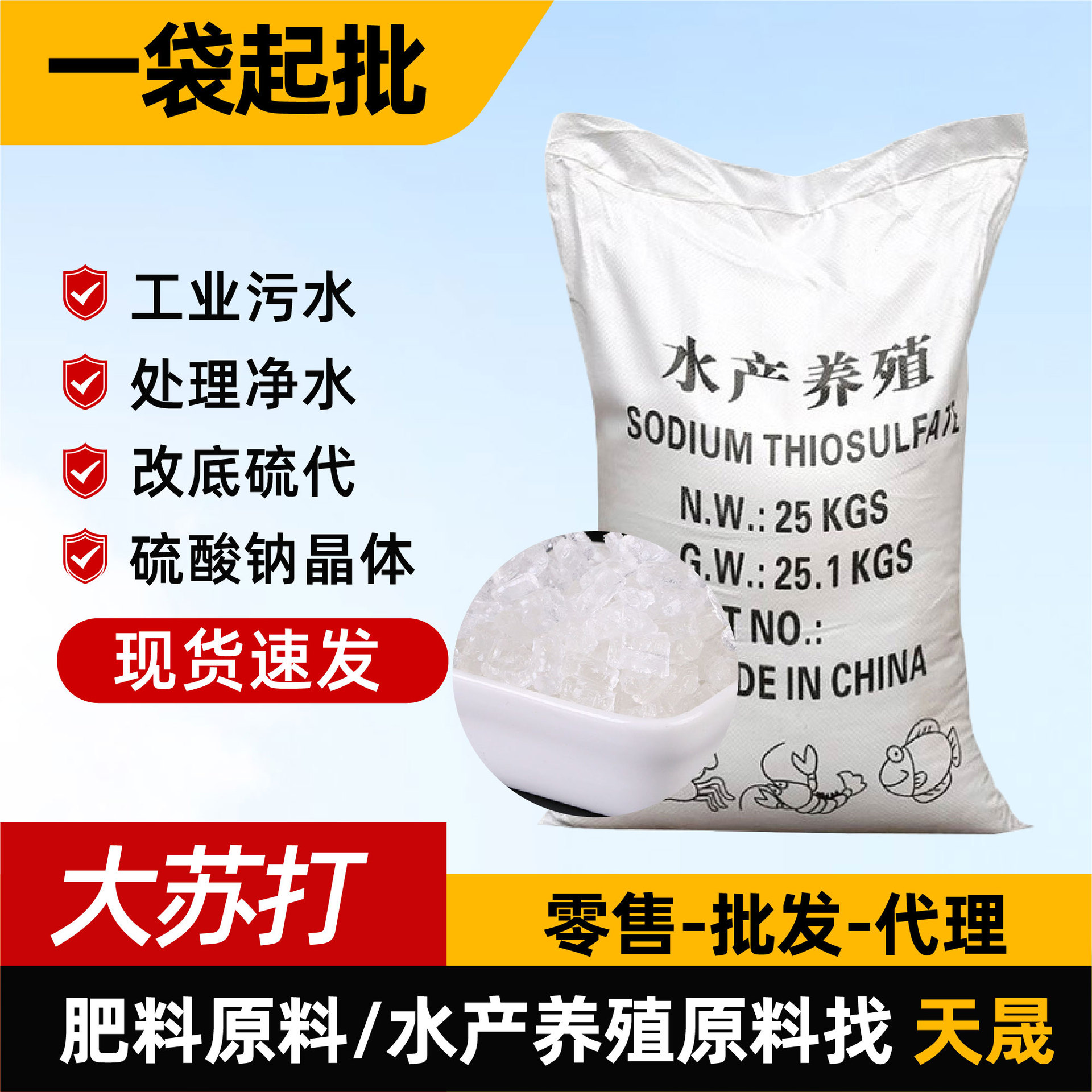 現物工業級チオ硫酸ナトリウム水産養殖塩素除去殺菌浄化水質粒子改底大ソーダ