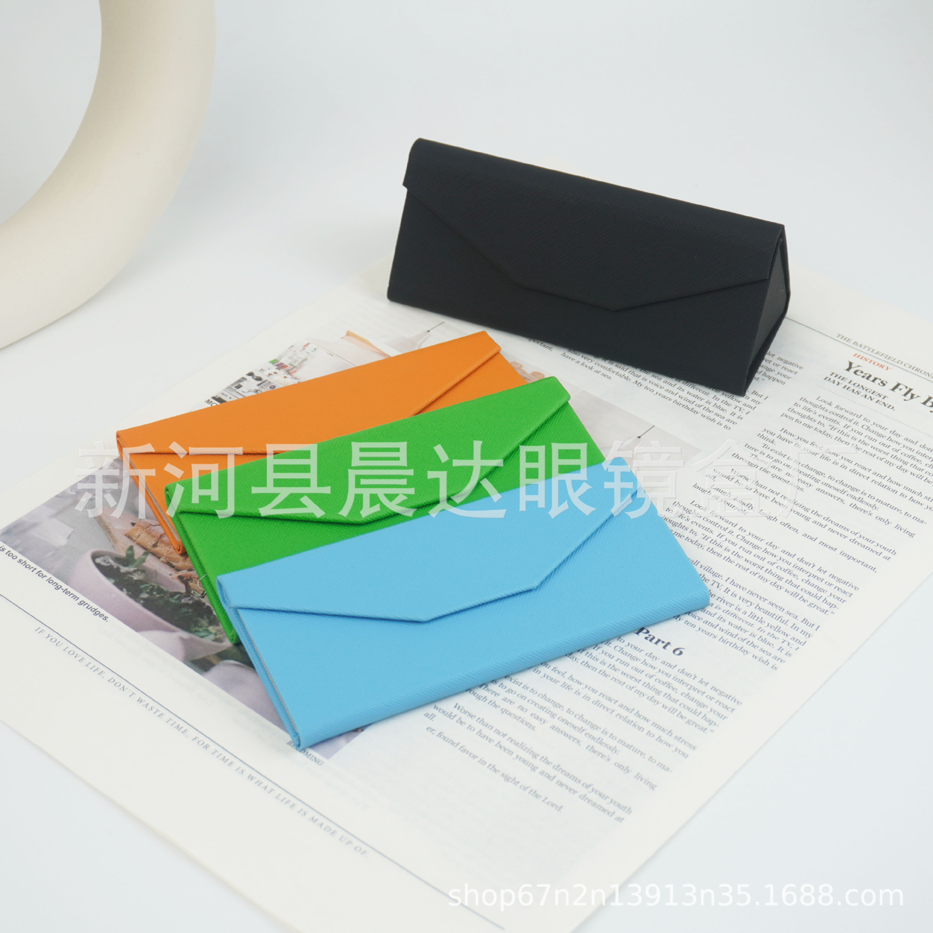 三角折りたたみメガネケースpuレザーペーパー目ミラーケース三角形財布メガネケース卸売