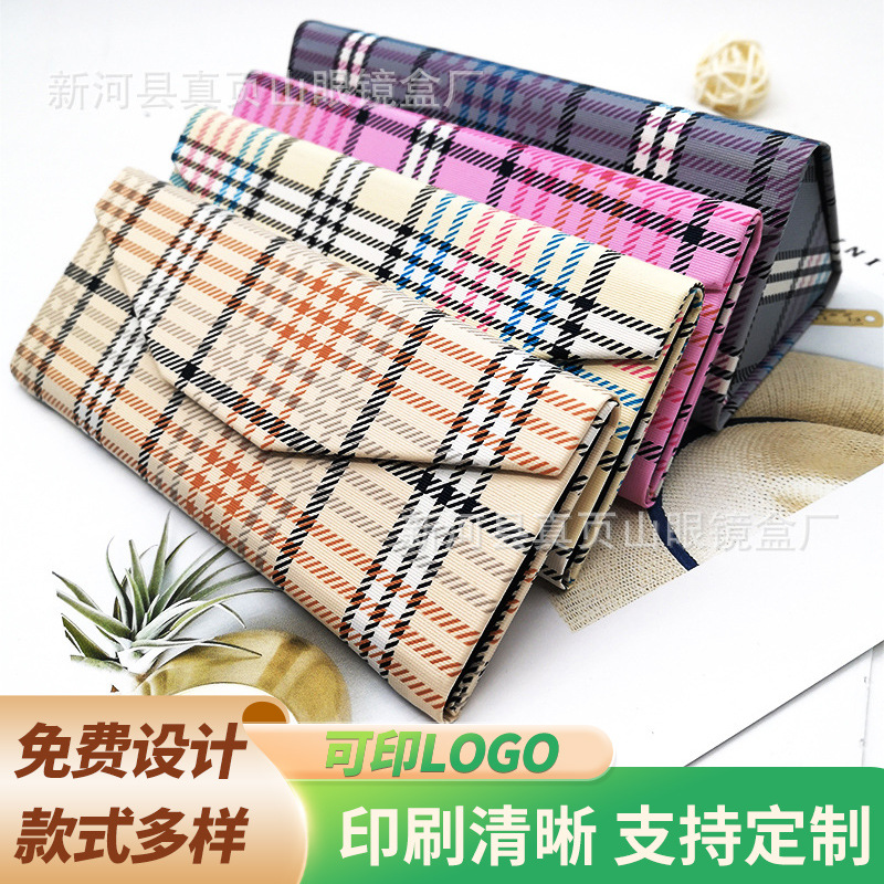 スポット卸売サングラスケース三角折りたたみ黒つや消しクロスパターン財布カスタムポータブルボックス