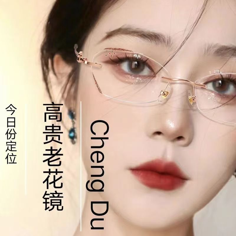 日系禁欲系風のフレームレスメガネ、女性向け、流行、近視用、度付き、ノーメイク美人、ブルーライトカット