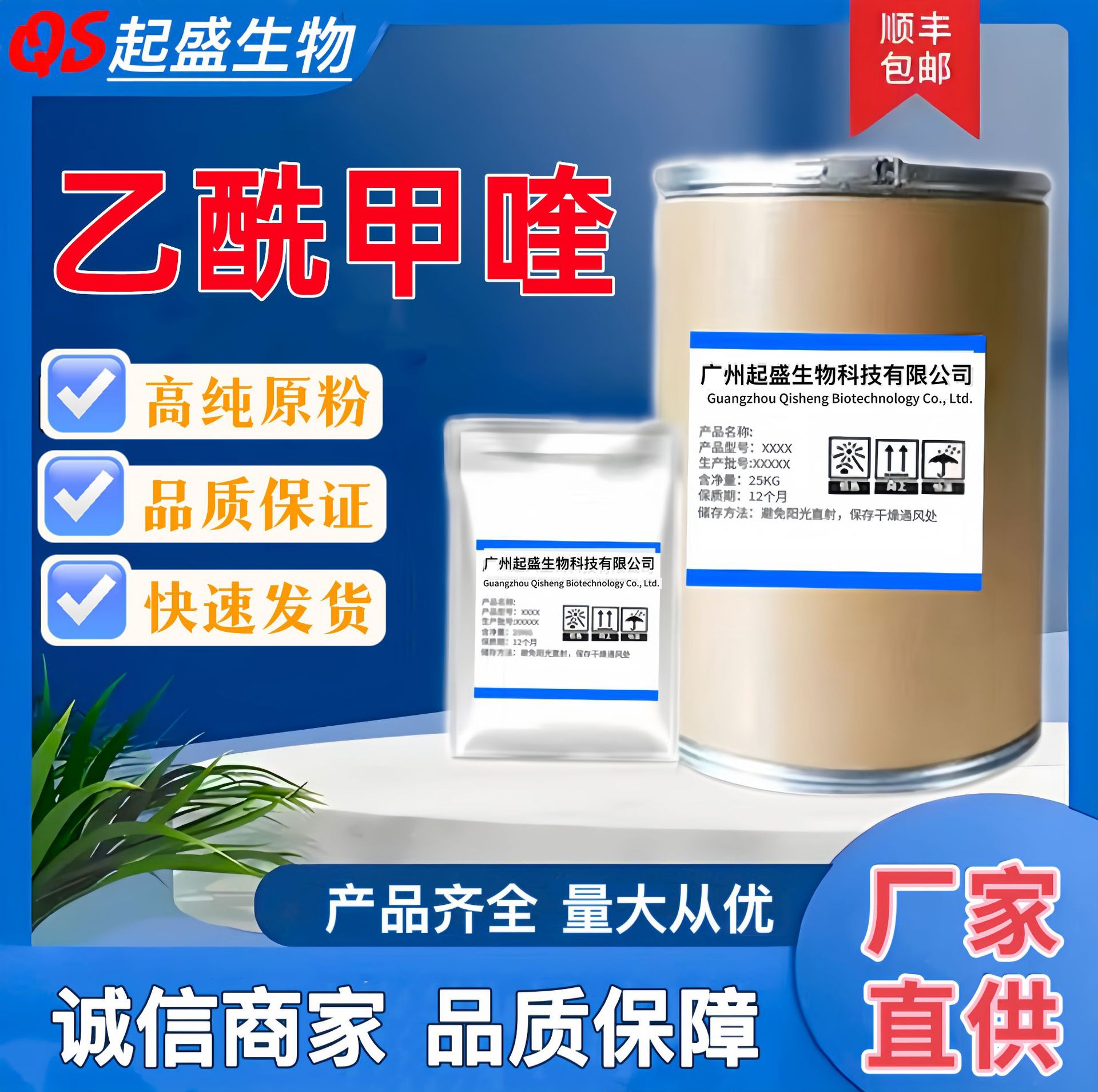 Qishengメーカーは、酢酸フロセチド [100g/袋] 高含有量 67-73-2 アセト酸フロセチドを在庫しています。