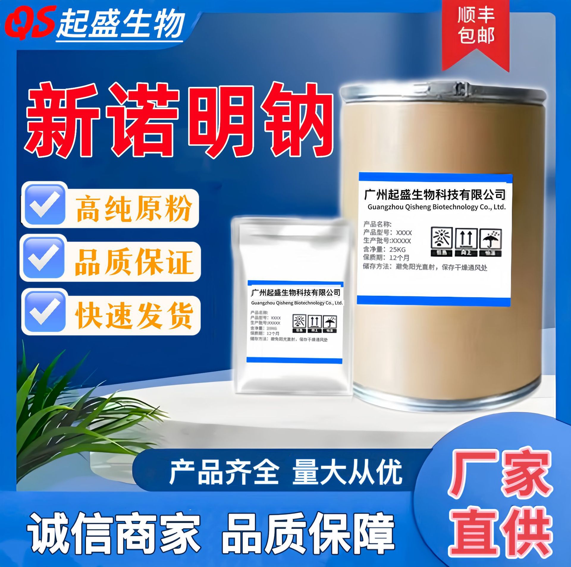 盛盛メーカーの現物供給新諾明ナトリウム品質保証99% 品質保証1kg/袋量量が大きい