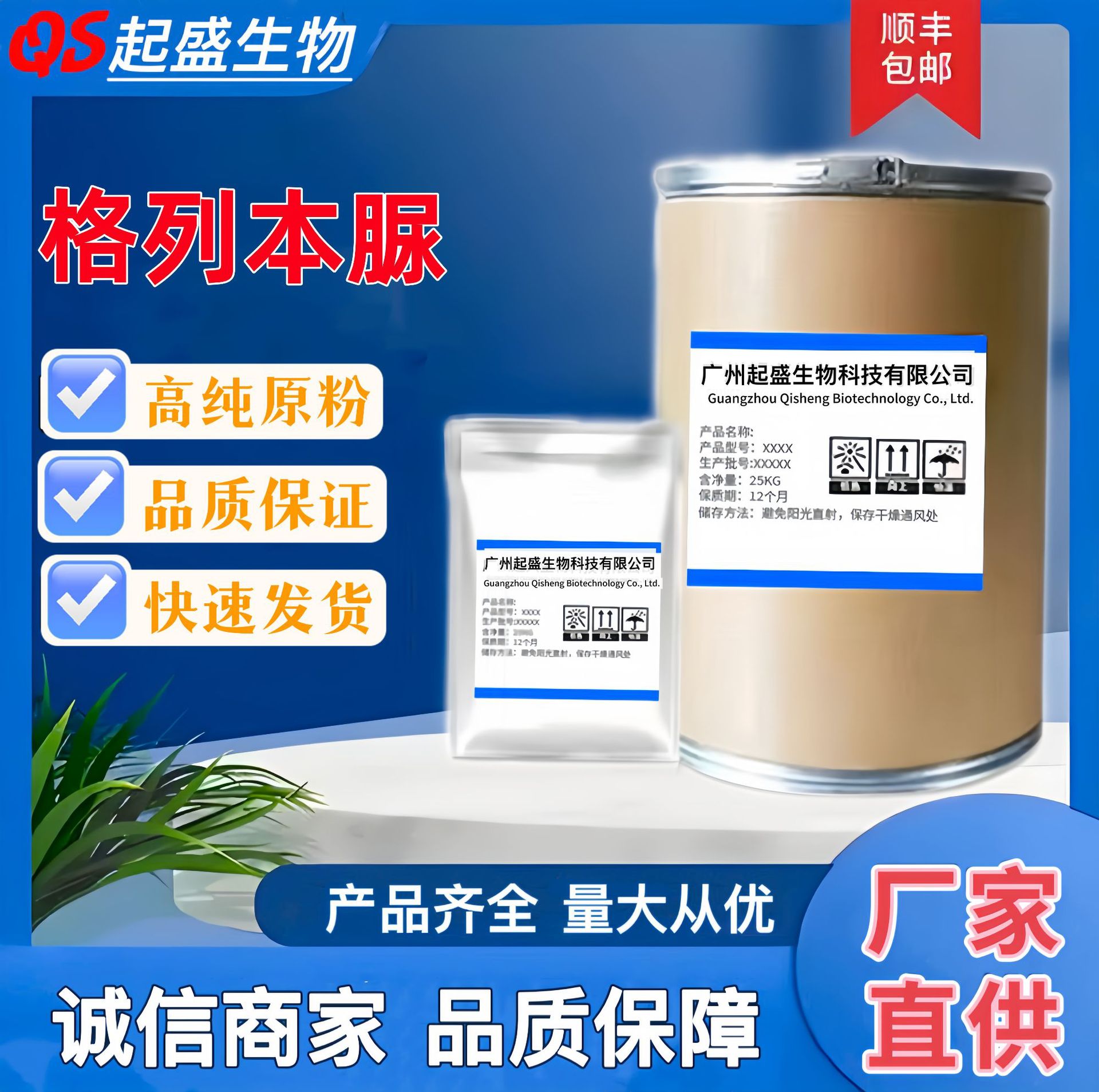 メーカー在庫あり Grel Qisheng 99% 含有量 1kg/袋 オリジナル粉末 CAS:93479-97-1 送料無料